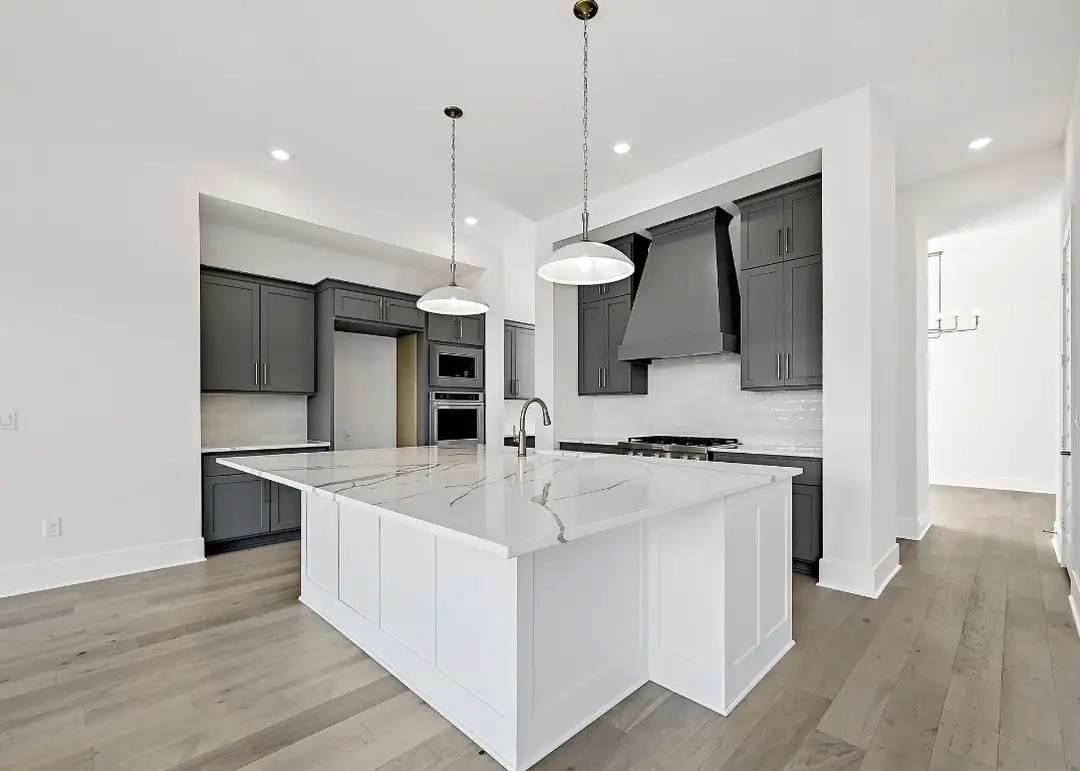 – Modern island kitchen with additional prep space